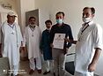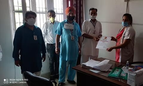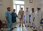 Brief Information:J&K team distributed CORONA Warrier Certificates to Ghagwal S.D.M - Sh. Ramkesh Sharma, Sh. Kuldeep Raj, S.H.O Ghagwal and Staff member of Sh Narsingh dev Hospital COVID centre Ghagwal, Dr. Liza, Vijeta Devi nurse F.M.H.P.W sweeper, Jazeera, Ajay Verma, Senior sanitary Inspector and other staff members in J&K region.