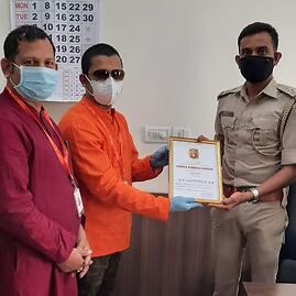 Brief Information:Bangalore team members reached out to the frontline Corona warriors in Bangalore and felicitated to our Police/ Traffic Police with certificates & also wished them for their good health.These are the Policeman, who came forward to help our migrant laborers to move from Bangalore to different parts of INDIA. We all will be always obliged to them forever for their support and hard work.
